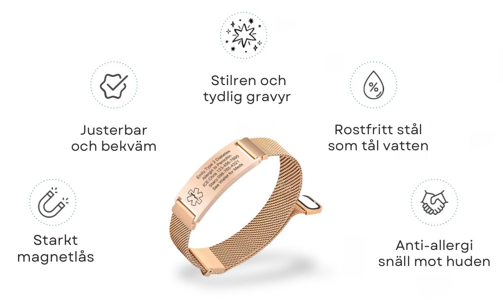 *Armbandet stängs med ett magnetlås som gör det justerbart och bekvämt att bära. Passar alla åldrar.